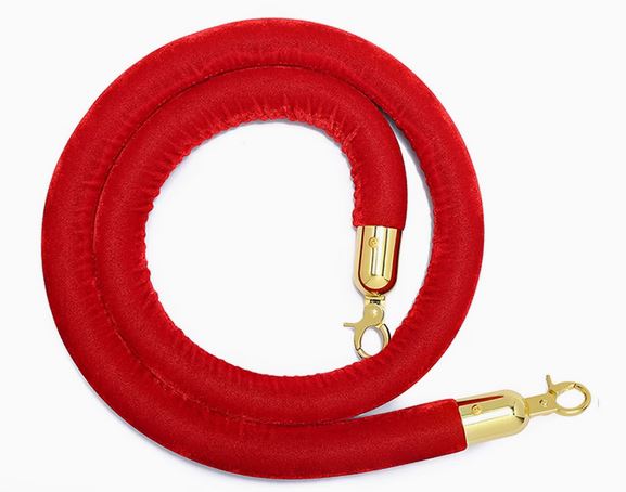 - Complete Set: 3 gold bollard posts and 2 red velvet ropes.