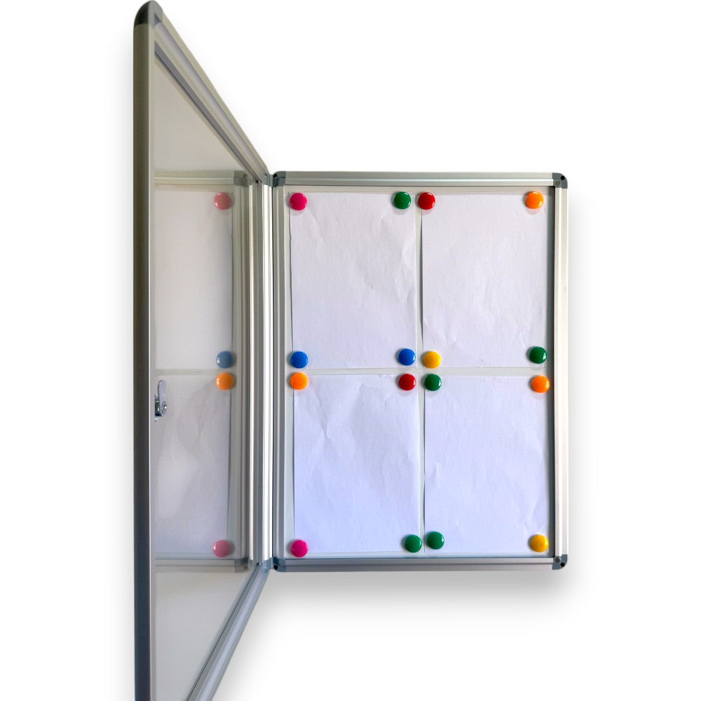 Magnetic Whiteboard Lockable Notice Board – Secure & Modern Display for 4 A4 Papers
